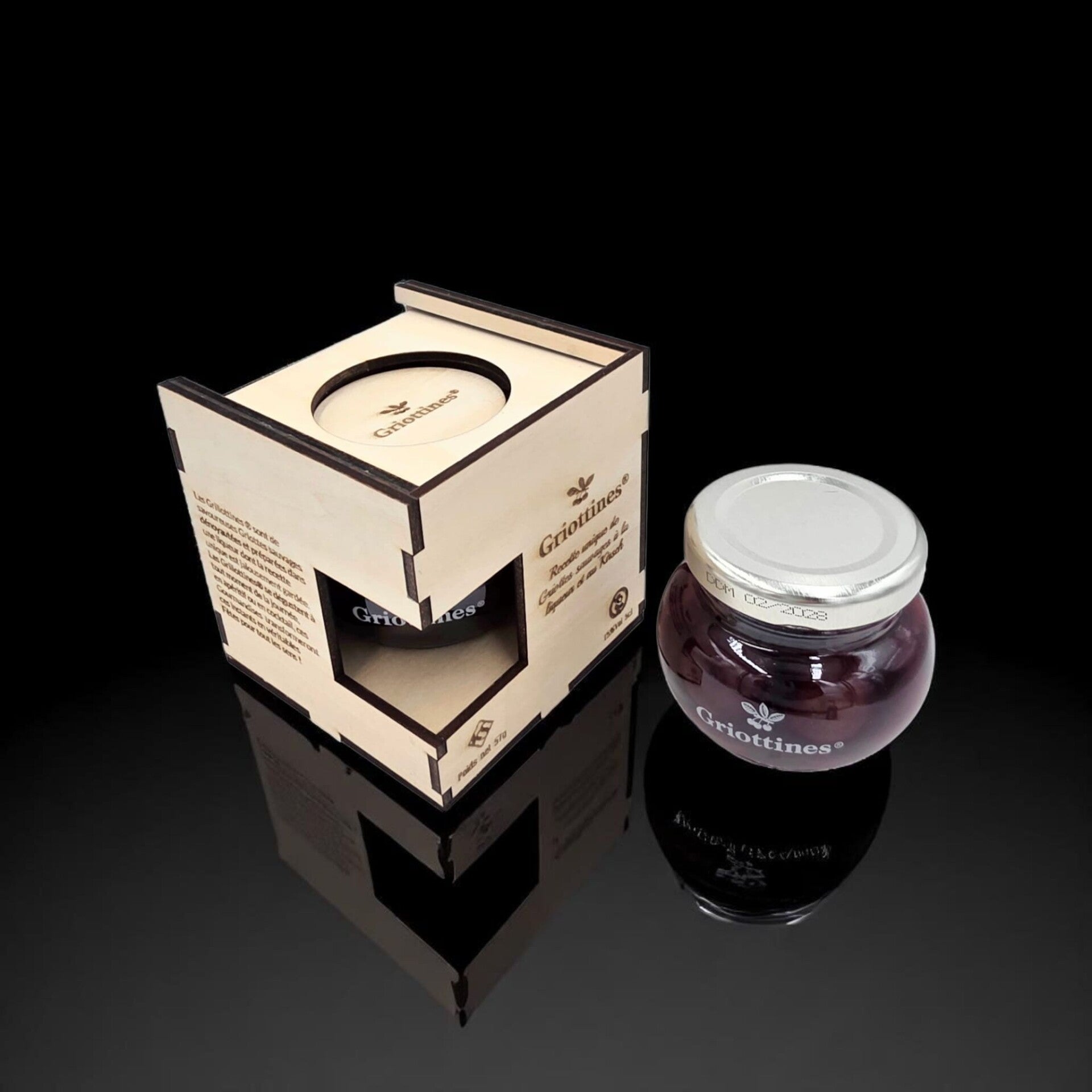 Contenant : Griottes sauvages dénoyautées, dans une liqueur. 5cl.