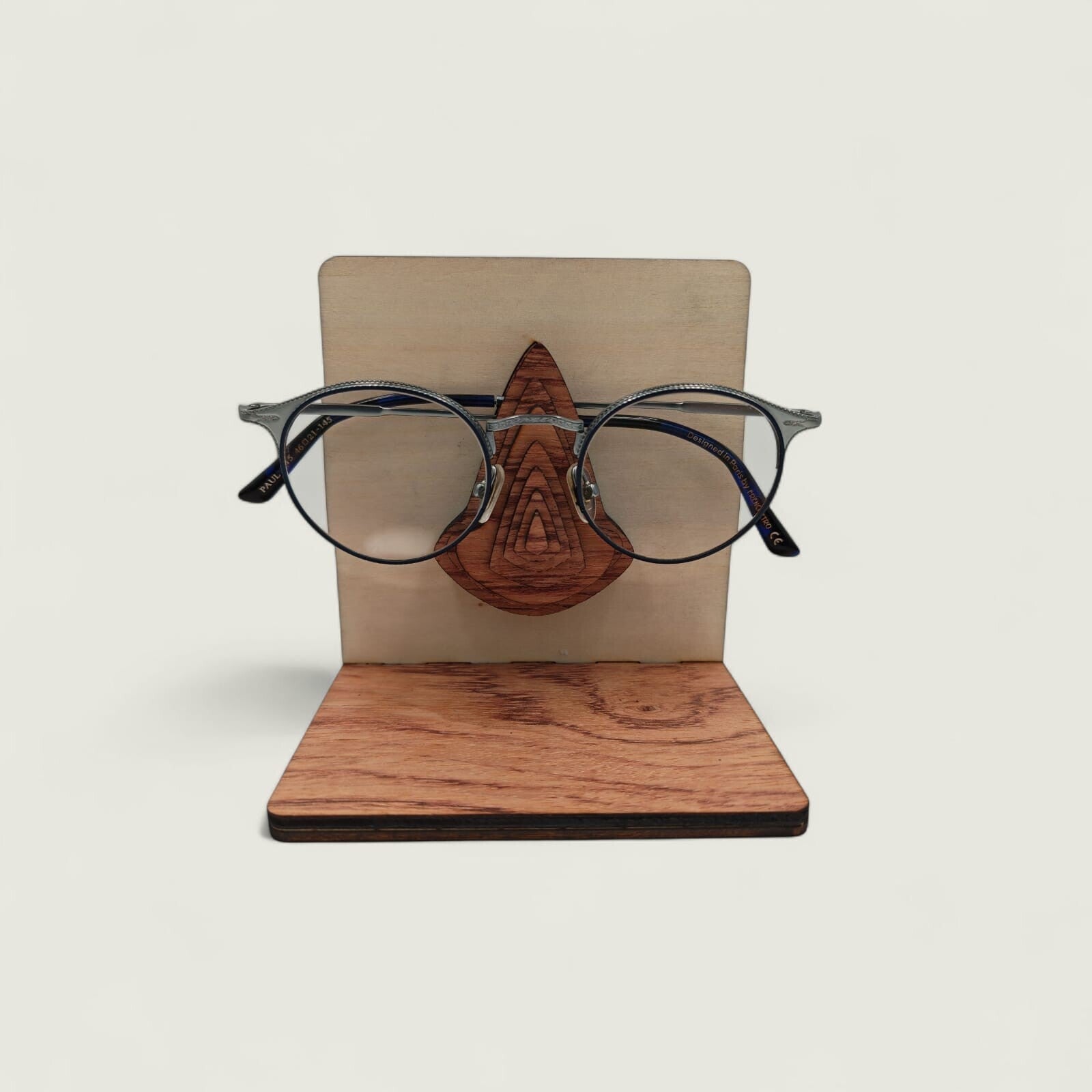 Support lunettes "Mario" en bois de tilleul et de bubinga (bois exotique d'Afrique).
