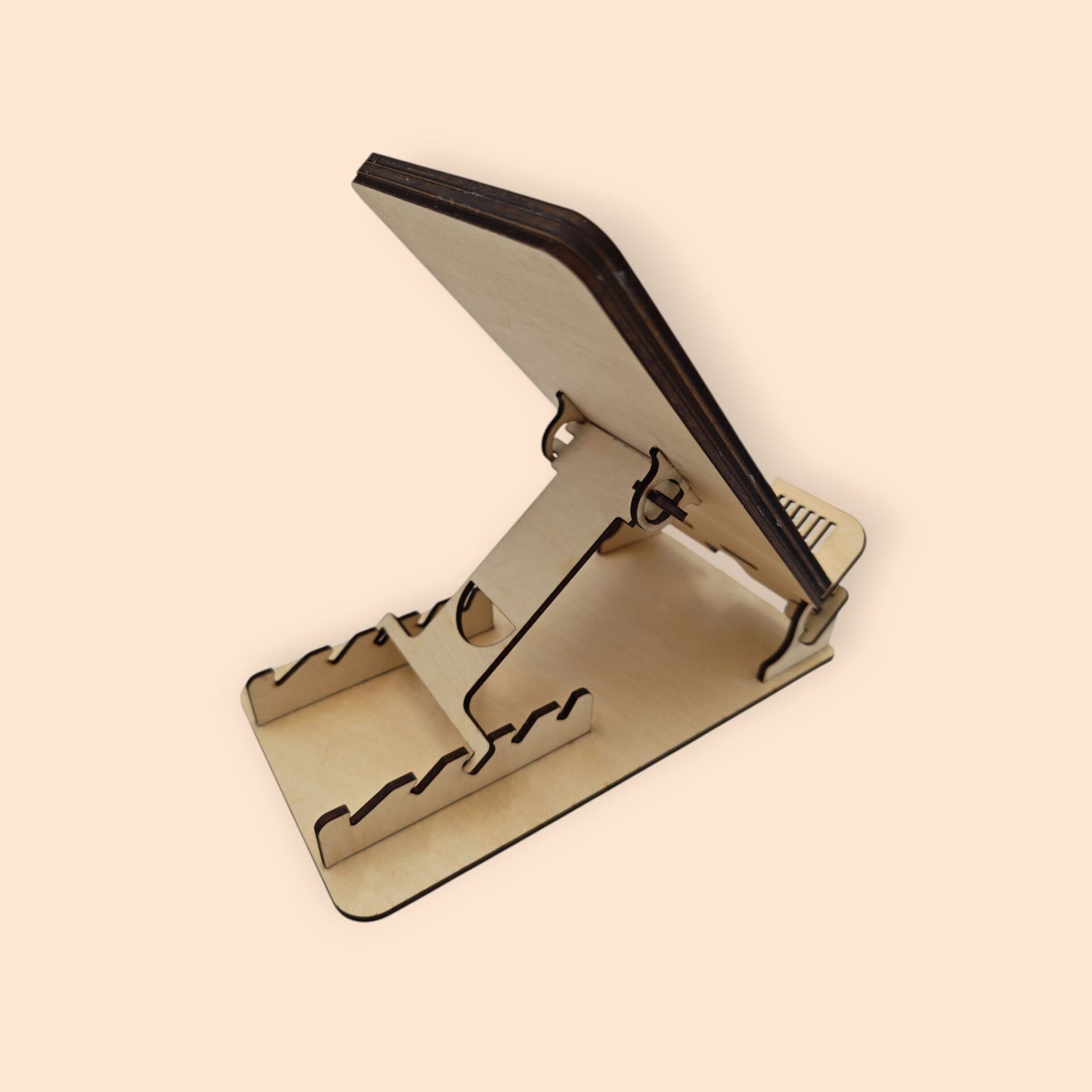 Support smartphone. Assemblage en bois de tilleul et de noyer.