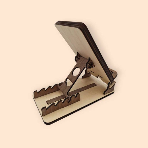 Station de charge pour smartphone compatible Qi. Assemblage en bois de tilleul et de noyer. La station est fournie avec le chargeur rapide inductive sans fil de 20w. Câble USB-C