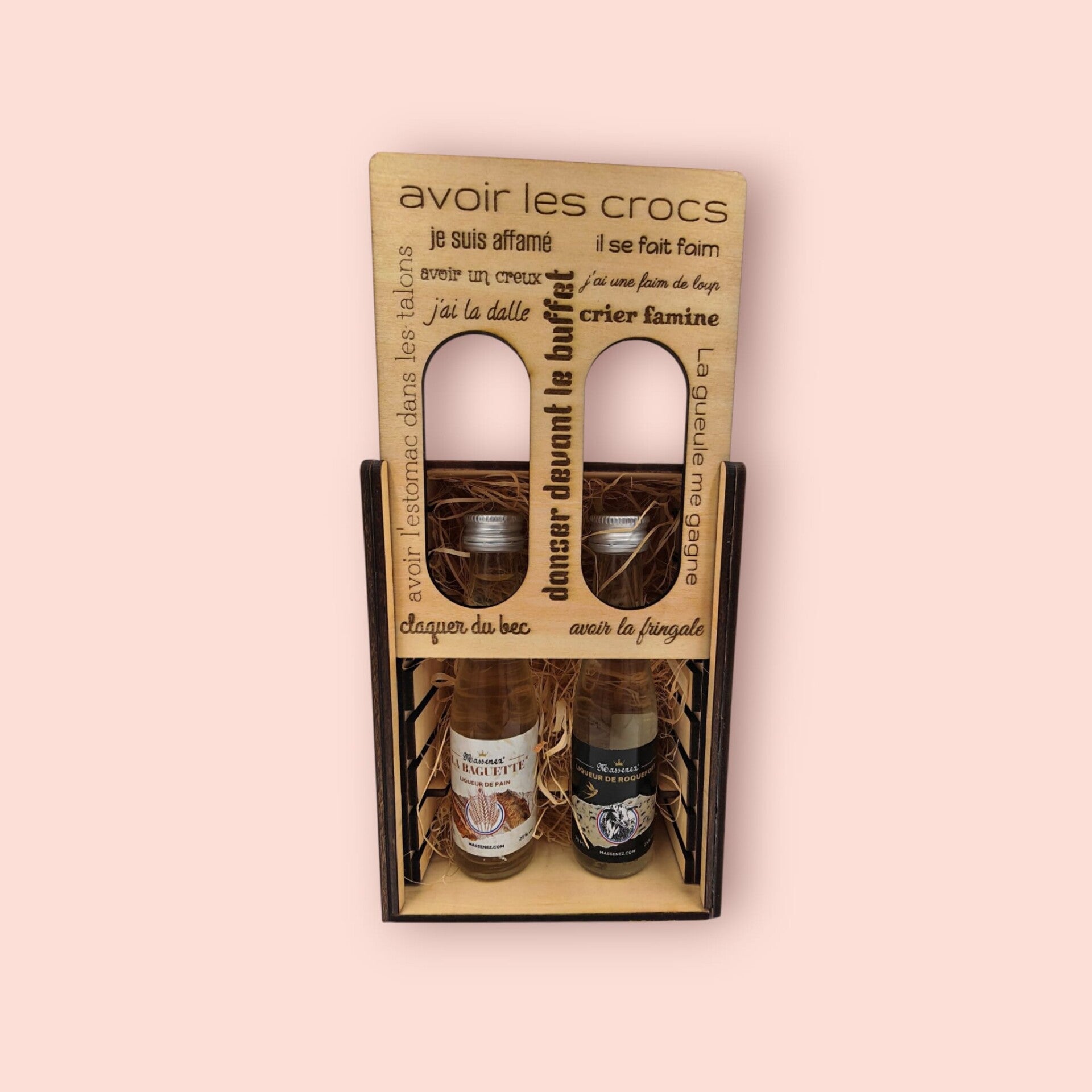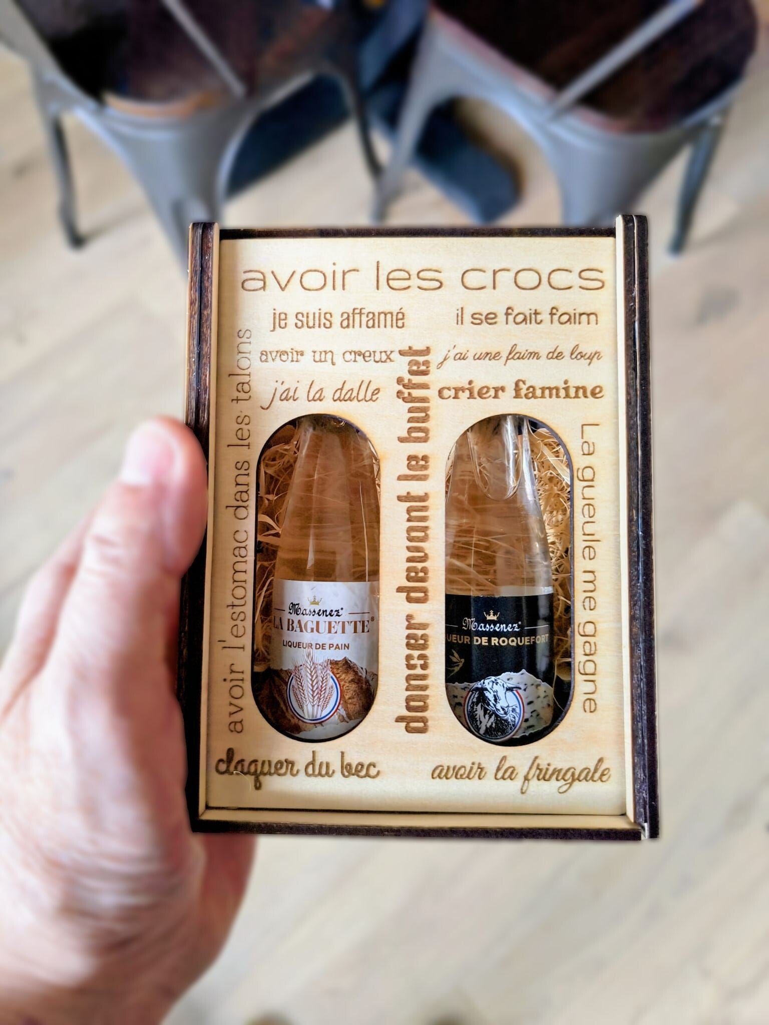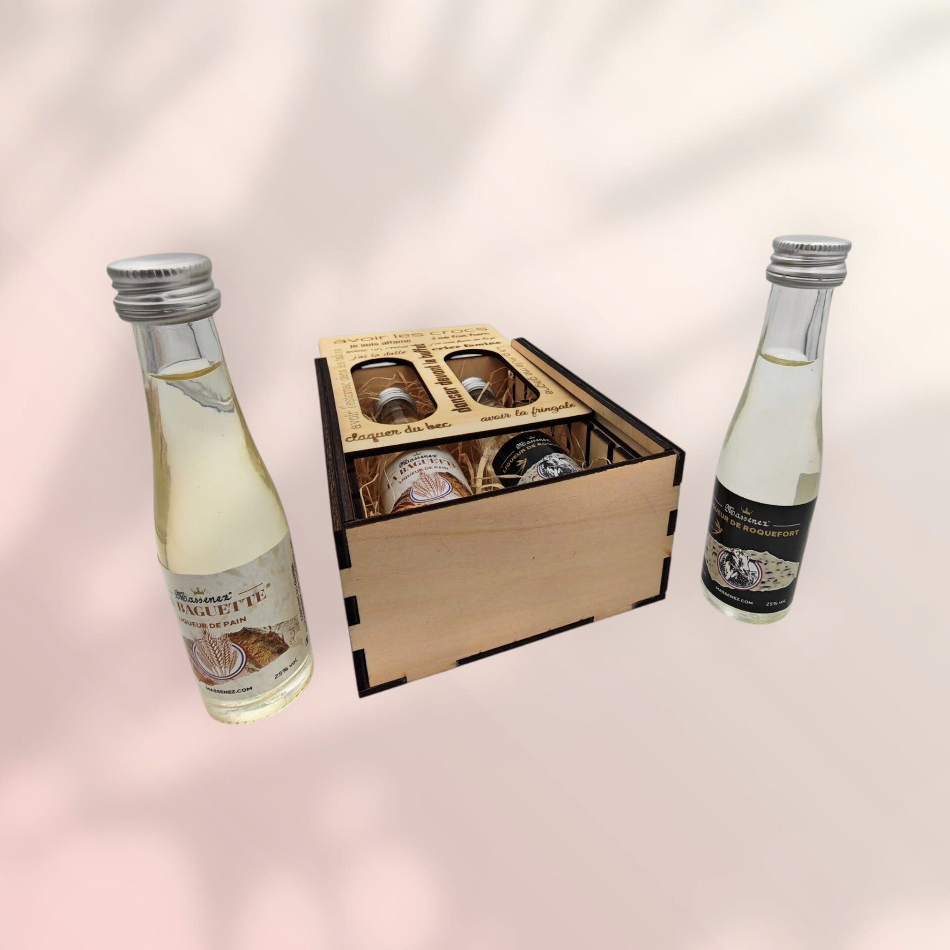 Imaginez l'odeur du pain frais dans une liqueur de baguette (la première au monde) et le gout de la iqueur de Roquefort (récompensée d'une médaille d'or au Grand Concours 2023 des Spiritives).L’œuvre des Maîtres : Affineur, distillateur et Liquoriste…Deux liqueur de la distillerie Massenez & Société rassemblées dans un coffret en bois de tilleul. Un duo de liqueurs original, pour les grands, les amoureux du patrimoine français, le bonheur des mixologistes et chefs les plus audacieux !